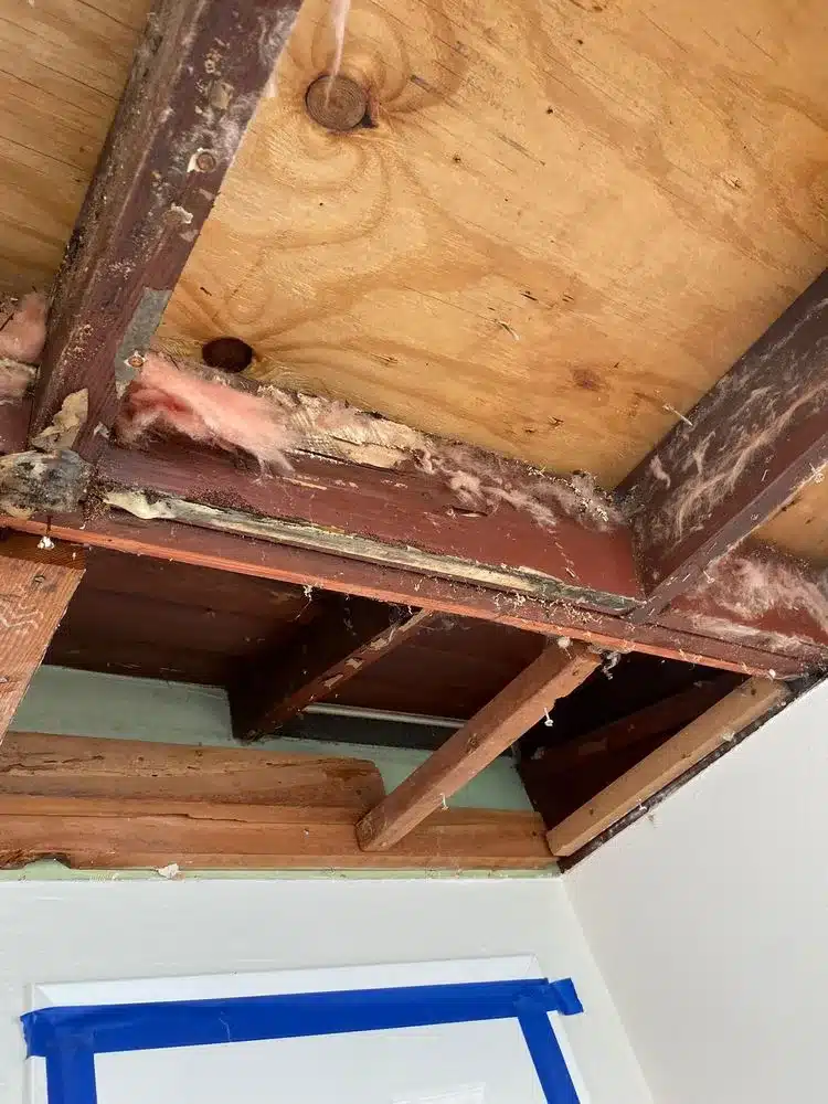 Once the area was fully contained and protected, our team accessed the ceiling and removed the mold. This process involved safely cutting into the impacted ceiling materials, removing all mold-contaminated components, and thoroughly cleaning the area. Every step was performed using industry-standard protocols to ensure the home’s and its occupants’ safety.