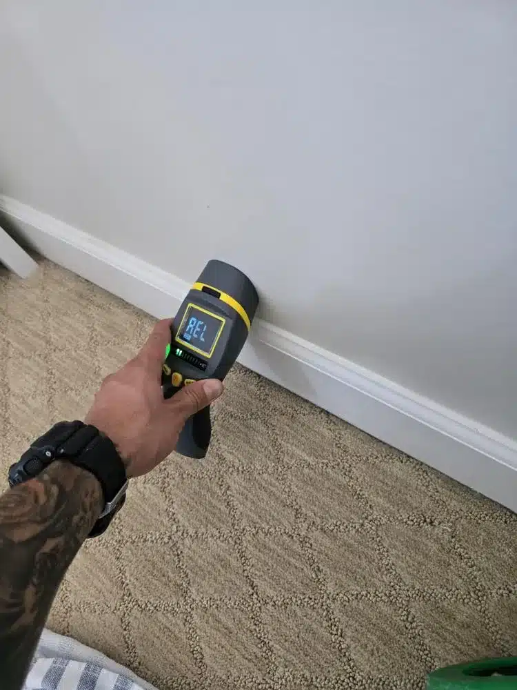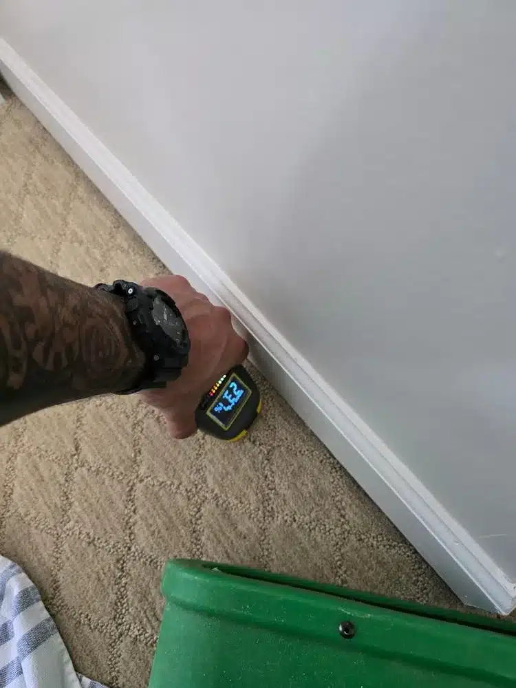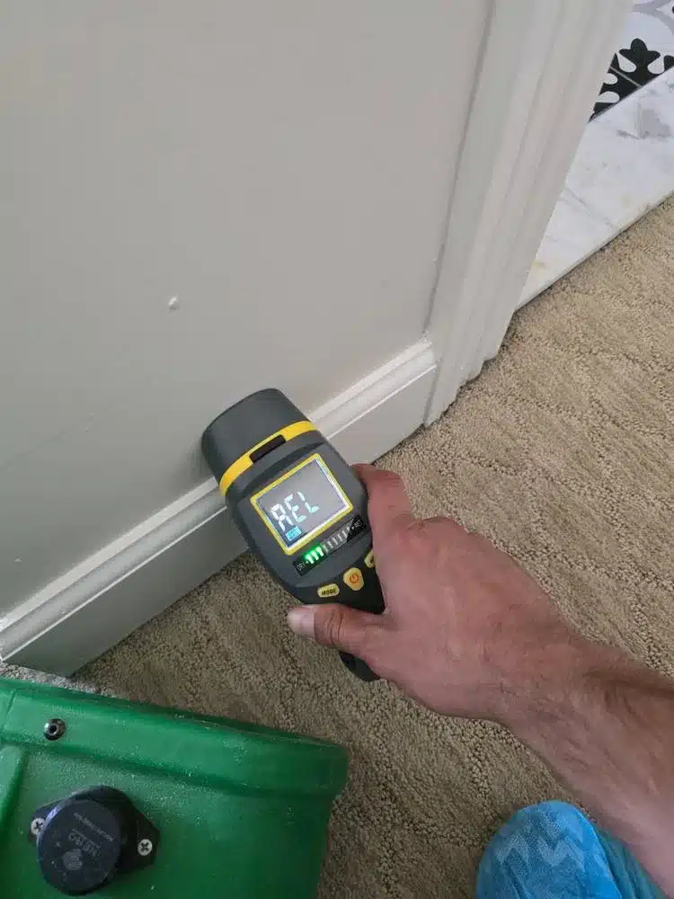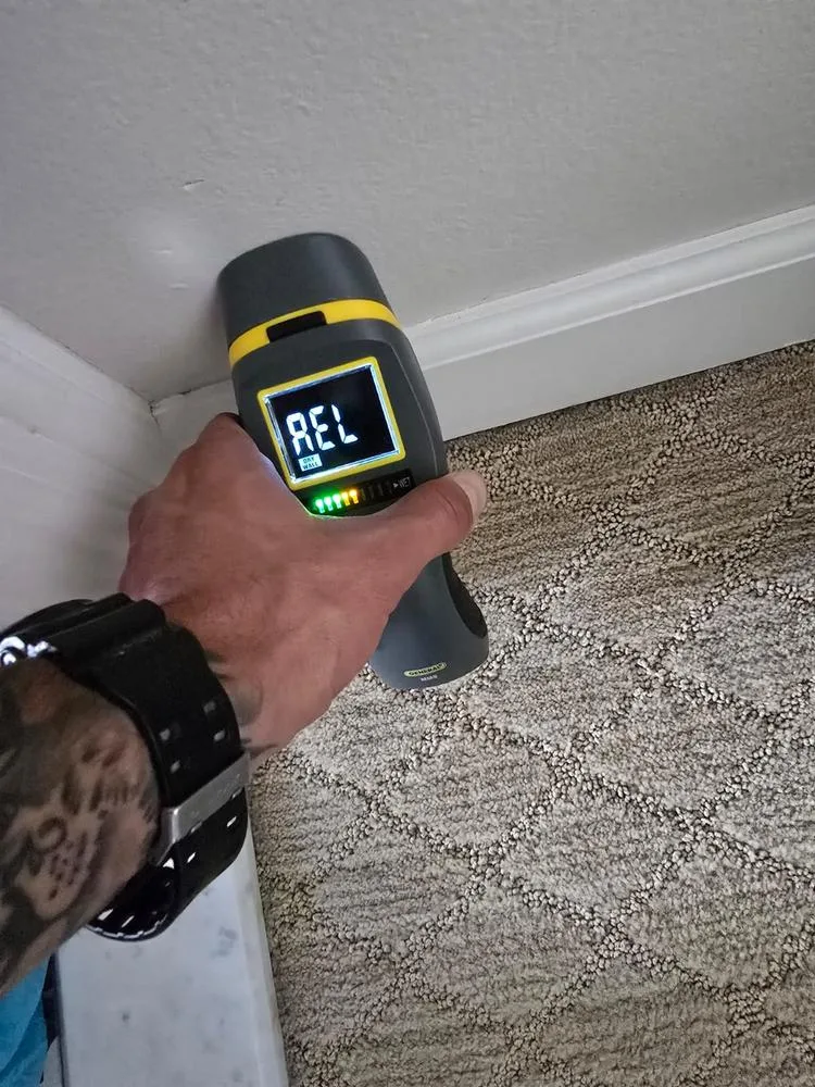 If left untreated, moisture trapped in walls and flooring can lead to serious problems. It creates the perfect environment for mold and mildew growth, weakens the structural integrity of materials, and can cause unpleasant odors or unsightly stains. Using our state-of-the-art moisture meters, we identified these problematic areas with precision. The metersโ color-coded display and REL mode helped us pinpoint the areas with the highest levels of moisture, ensuring our efforts were focused where they were needed most.