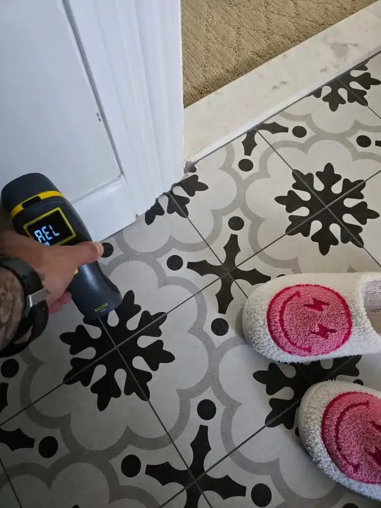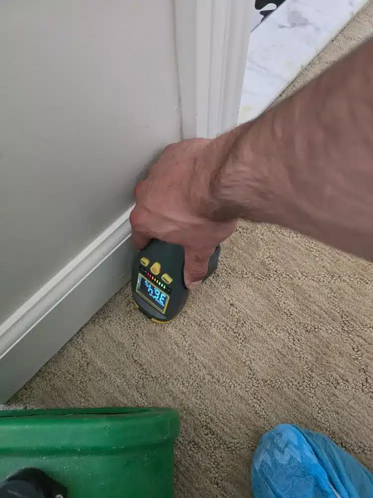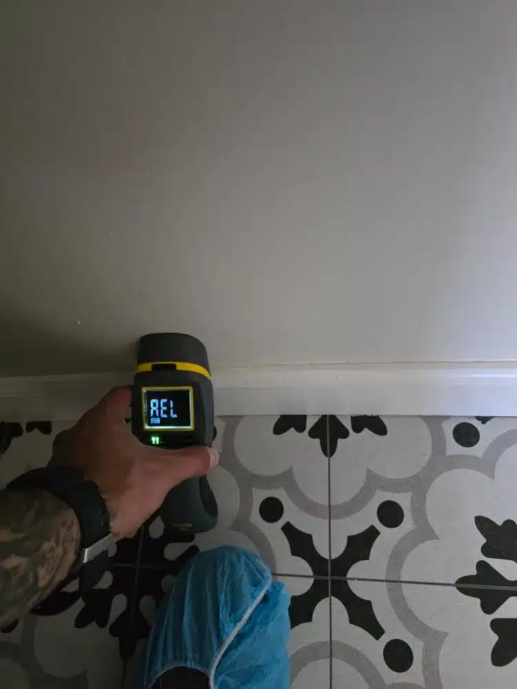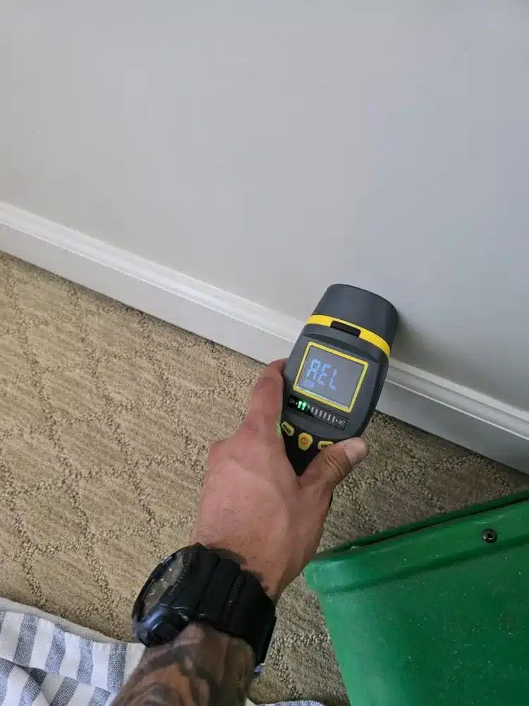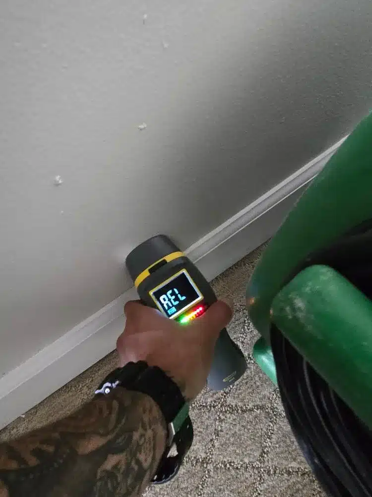 If left untreated, moisture trapped in walls and flooring can lead to serious problems. It creates the perfect environment for mold and mildew growth, weakens the structural integrity of materials, and can cause unpleasant odors or unsightly stains. Using our state-of-the-art moisture meters, we identified these problematic areas with precision. The metersโ color-coded display and REL mode helped us pinpoint the areas with the highest levels of moisture, ensuring our efforts were focused where they were needed most.