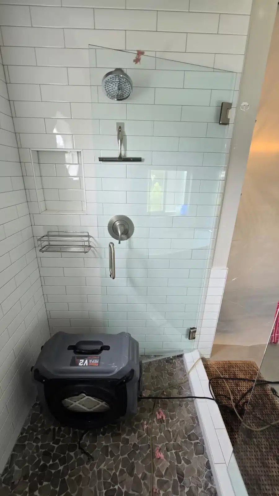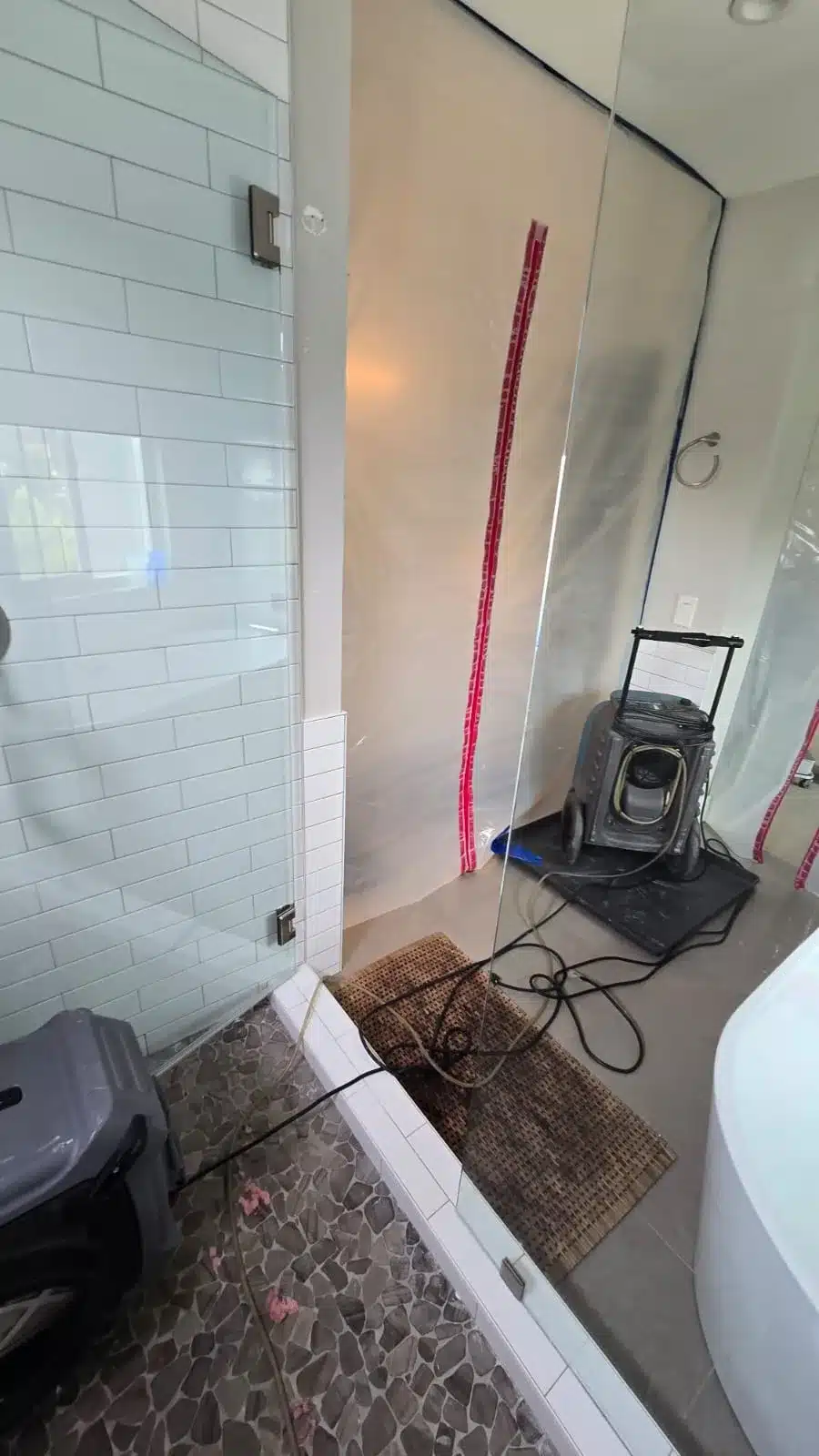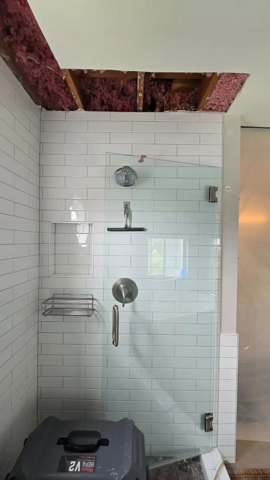 Mold growth on a shower ceiling is often the result of excess moisture that can’t escape. This moisture can come from several sources, including leaky pipes, poor ventilation, or steam buildup during showers. For this project, we thoroughly inspected the bathroom to identify the exact moisture source, which helped us tailor the mold remediation process. By addressing the root cause of the moisture, we can prevent future mold growth, ensuring the shower remains free of mold in the long term. Our professional approach ensures that all moisture-related issues are handled, leading to a cleaner, safer bathroom environment for the homeowner.
